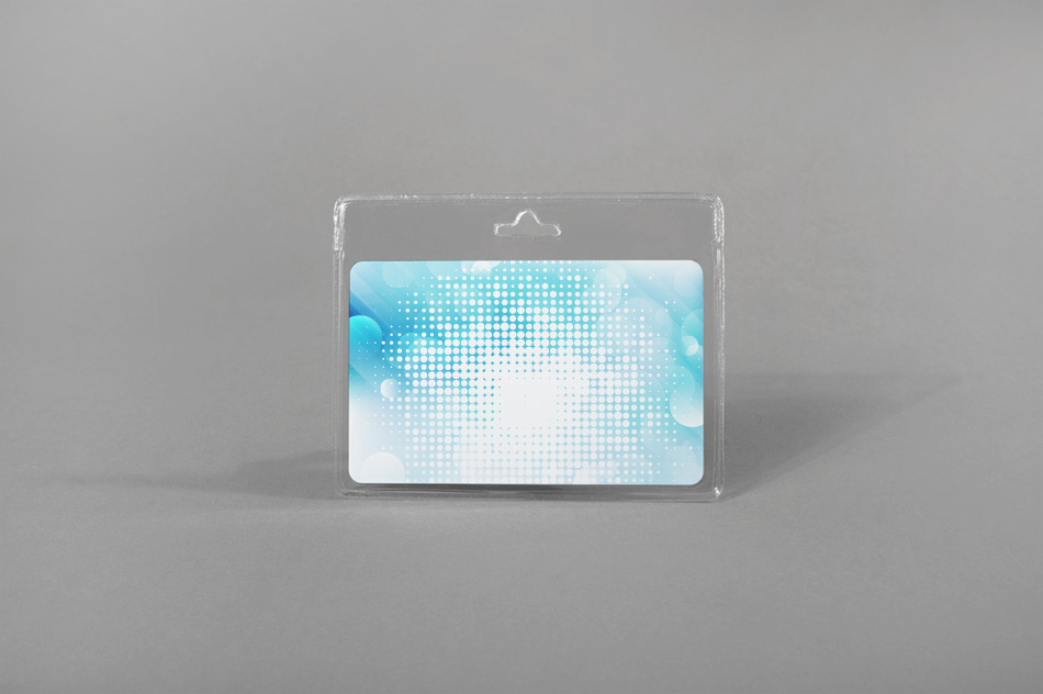 Transparent carrier made of compact plastic Easy insertion of sheets from the side Dimension: 86mm x 56mm